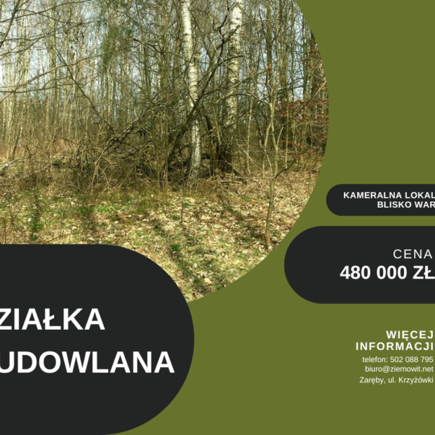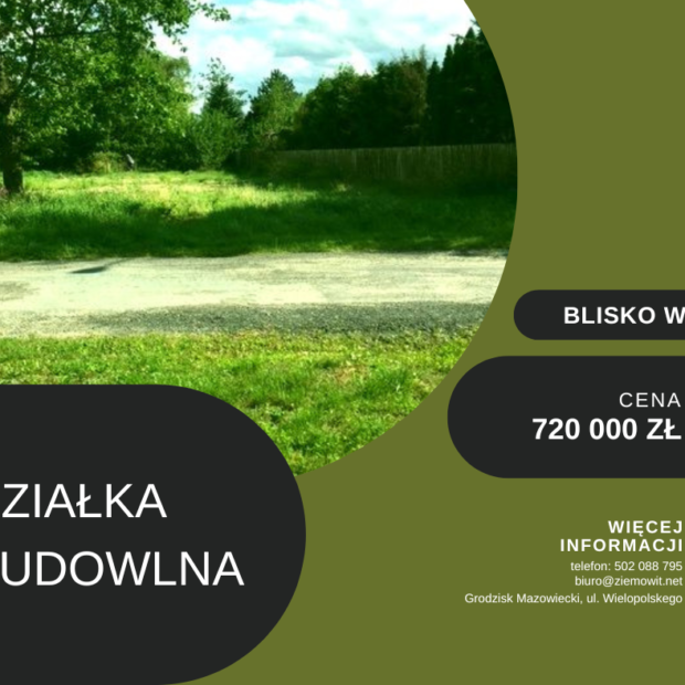 Działka budowlana w zielonej kameralnej części Grodziska Mazowieckiego. Atrakcyjna lokalizacja 5 min spacerkiem do WKD.