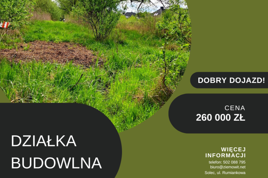 Działka w podwarszawskim Solcu – powiat piaseczyński – z dobrym dojazdem do Warszawy ok. 20 km. do centrum Mokotowa. Działka ma dostęp do podstawowych mediów; elektryczności i sieci gazowej. Wiekszość sąsiednich działek po tej stronie ulicy Rumiankowej została zabudowana.