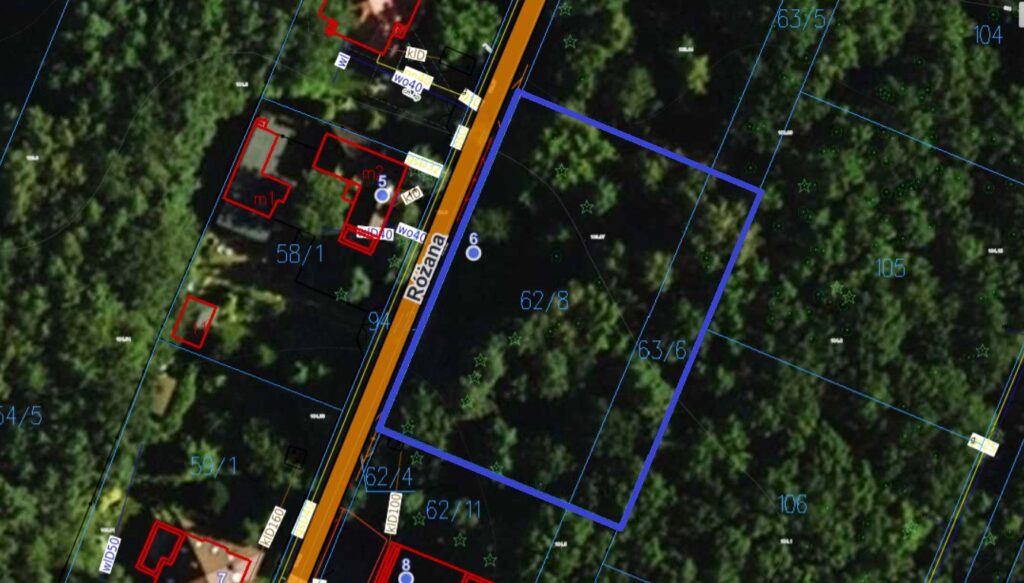 Działka w dobrej lokalizacji, przy kameralnej ulicy. W kształcie prostokąta o wymiarach 49 m wzdłuż ulicy i 36 w głąb. W sąsiedztwie zabudowy willowej. Działka jest w zasięgu trzech przystanków WKD Polesia – najbliżej ok. 5 minut spaceru, Podkowy Leśnej Zachodniej – ok. 15 – 20 minut i Kazimierówki, też ok. 15 minut. Tworzy to doskonały dojazd do Warszawy Śródmieścia a także do miejscowości usytuowanych na linii WKD. Blisko szkoła, sklepy, kościół.