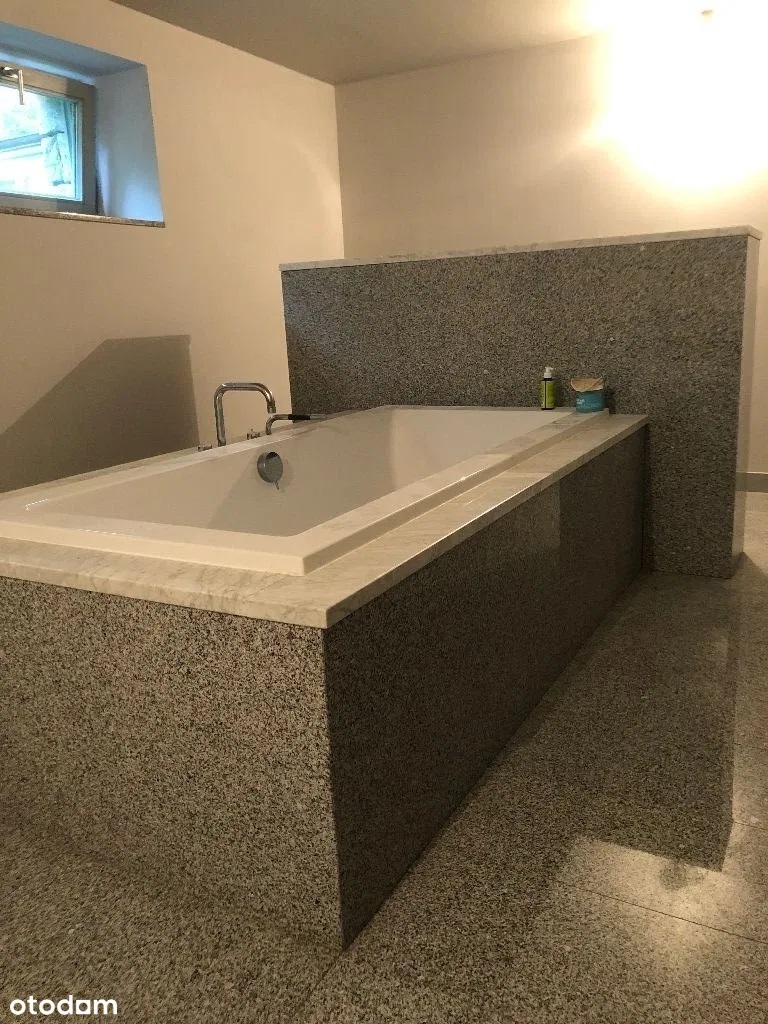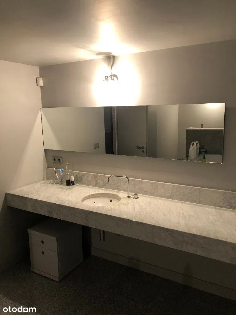 – Część mieszkalna: Sypialnia o pow. 22,5M2 i wys. 3,2 M z pełnowymiarowym oknem, Pralnia o pow. X, Łazienki o pow. 18M2 z wanna, bidetem i WC Koralle, Blatem umywalkowym z marmuru karraryjskiego oraz bateriami umywalkową i wannową Vola, w łazience jest ogrzewanie podłogowe oraz Garderoby o pow. 11M2;