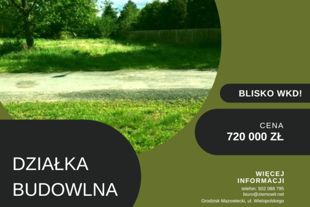 Działka budowlana w zielonej kameralnej części Grodziska Mazowieckiego. Atrakcyjna lokalizacja 5 min spacerkiem do WKD.